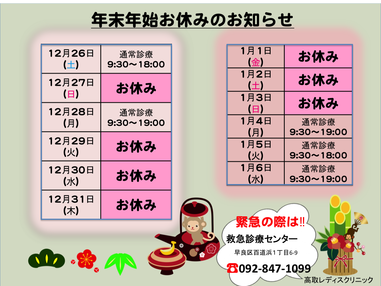 さて、当院は新年の1月4日より診察を開始いたします。