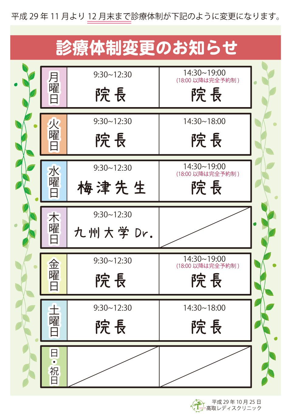 ☆11/13(水)、11/27(水)診療時間変更について☆