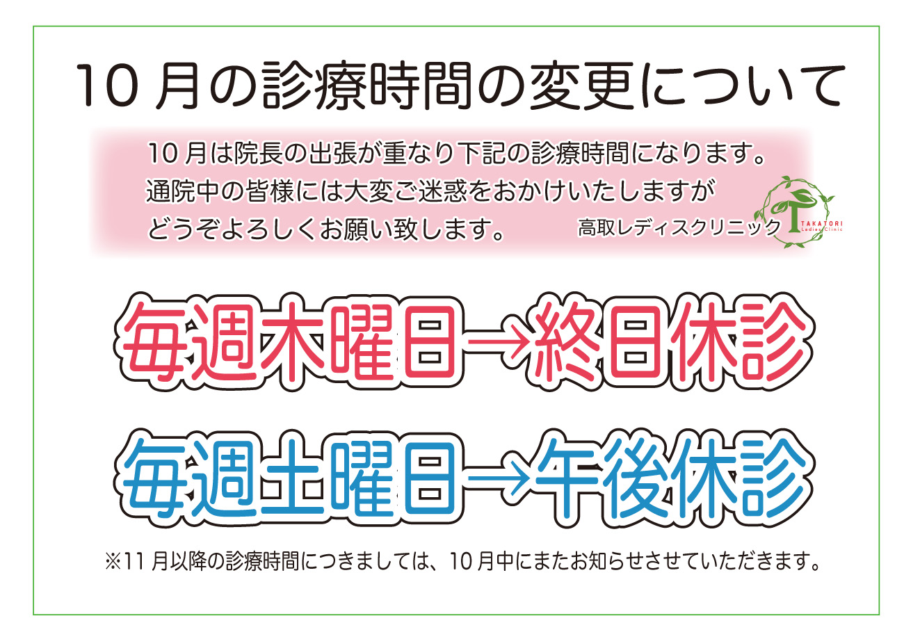 ☆11/13(水)、11/27(水)診療時間変更について☆