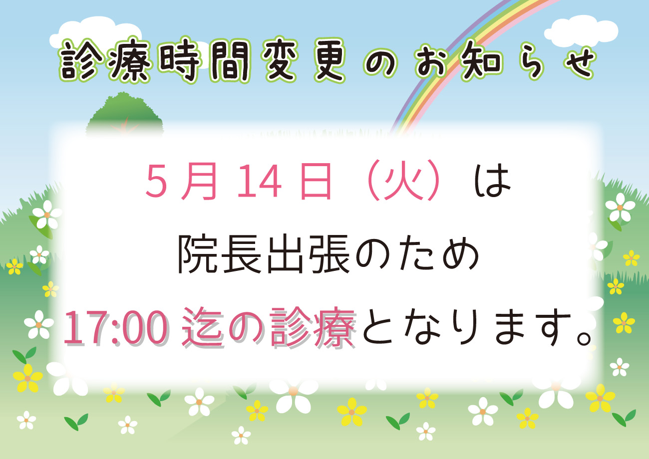 ☆5月14日診療時間変更のお知らせ☆