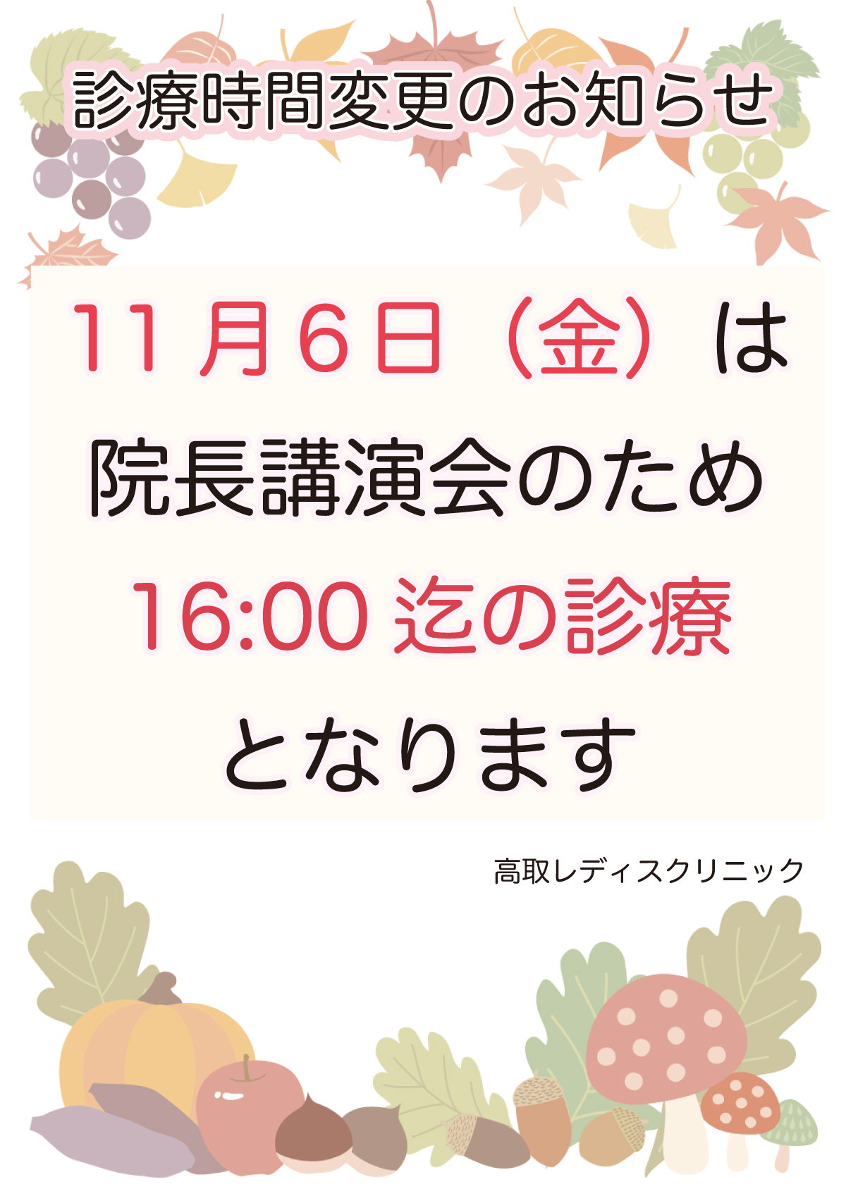 ☆11/13(水)、11/27(水)診療時間変更について☆