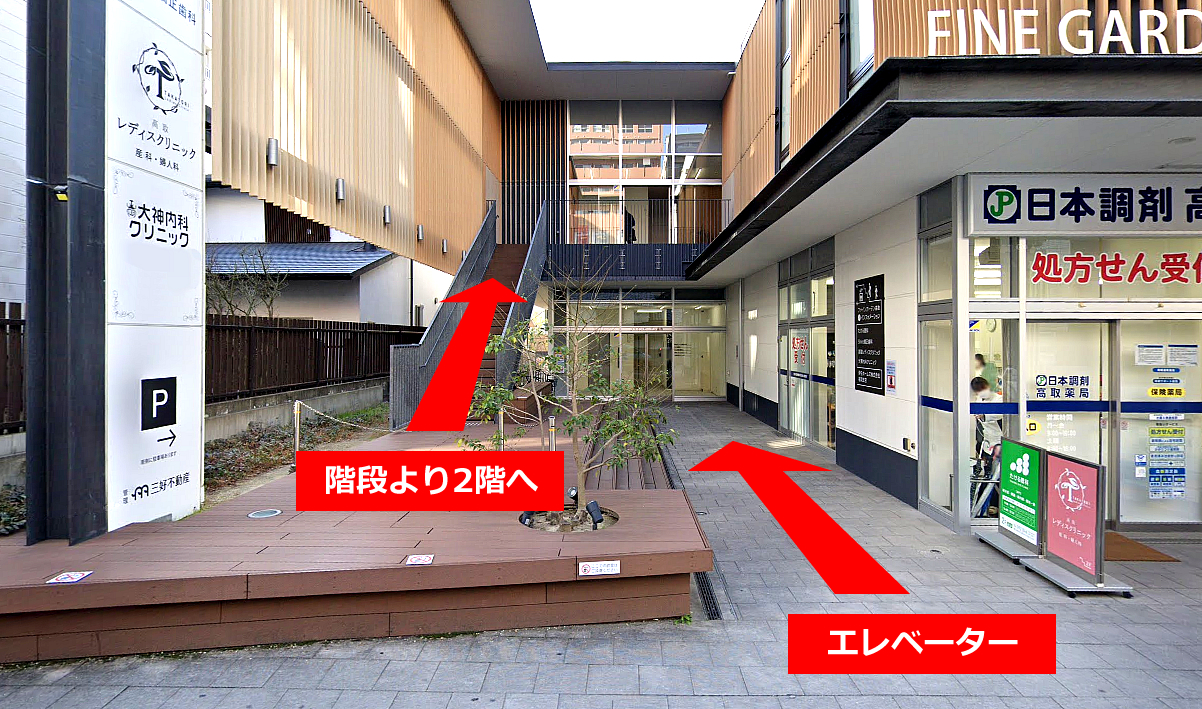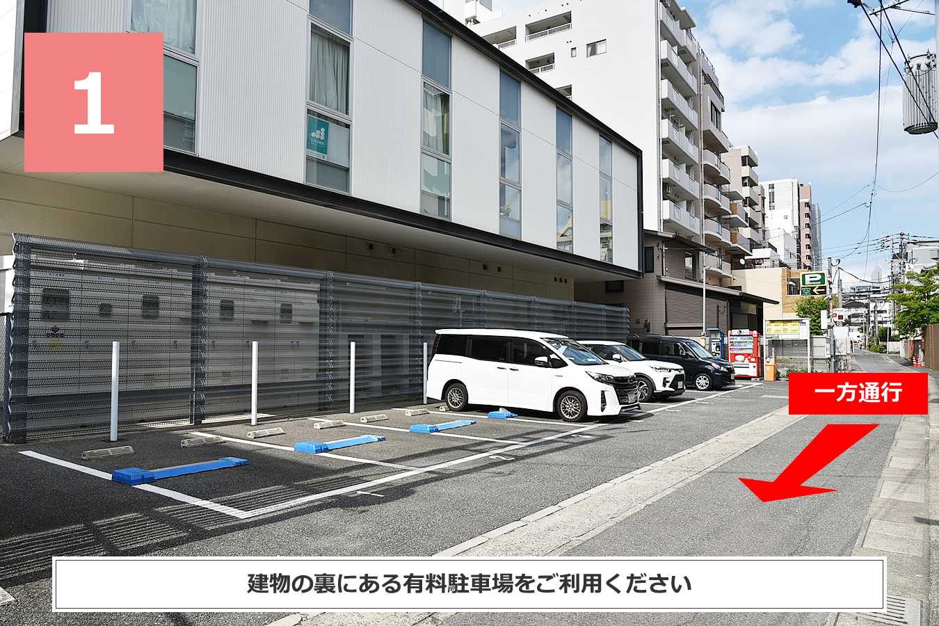 高取レディスクリニックはファインガーデン高取という医療ビル内にあり、施設裏に9台駐車可能な駐車場を設けています。(有料)